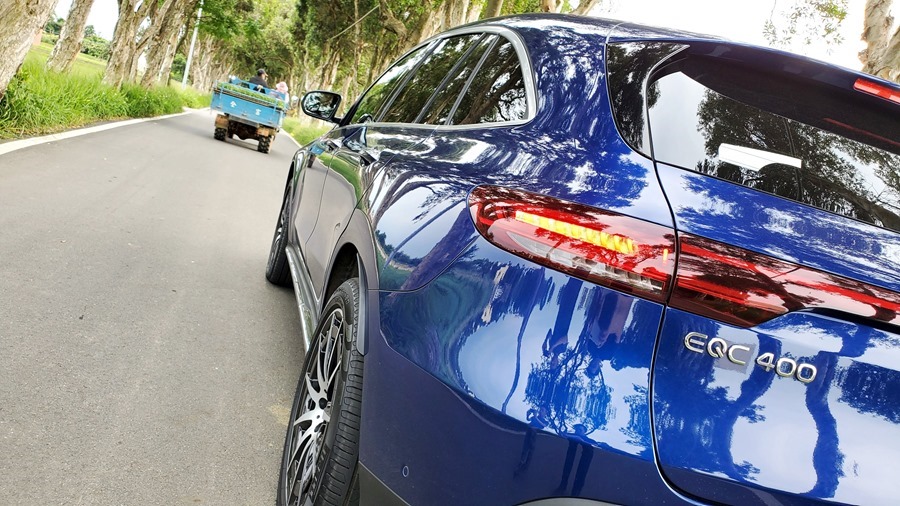 由於 EQC 是台電動車,在車尾是看不到排氣管,保桿下緣有些許下擾流設計,增加運動化效果。