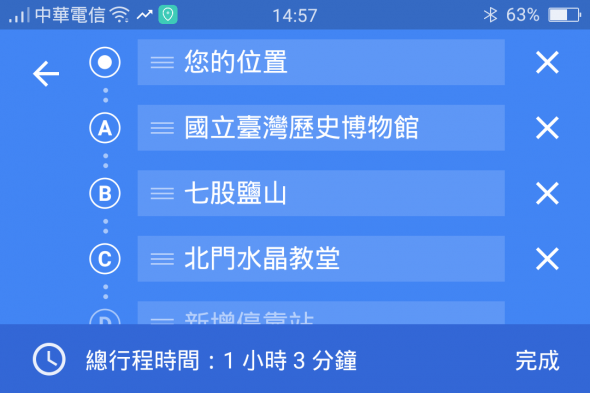 小技巧:按住景點名稱旁邊的「≡」上下拖曳可以調整路線順序。