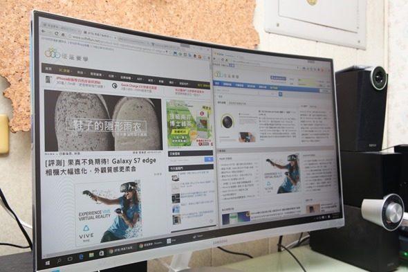 有聲之外當然不能忽略影,曲面顯示器最迷人的地方,也就是那條弧形的曲線,怎麼看怎麼美~沒有直線硬梆梆的感覺。