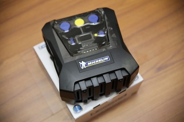 MICHELIN 米其林數位自動高速打氣機有幾種不同款式,挑選這款的原因包括它內建電子胎壓計和螢幕,可以即時看到胎壓,這樣一來就不怕打過頭。