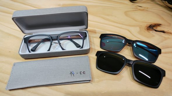 再來是我最需要的墨鏡功能。XLTt 的前掛式墨鏡採用磁吸設計,方便需要的時候隨時拆裝,它們還很貼心的設計了硬殼眼鏡盒和鏡片收納袋,就算收進東西很多的包包也完全不用擔心刮傷或磨損。
