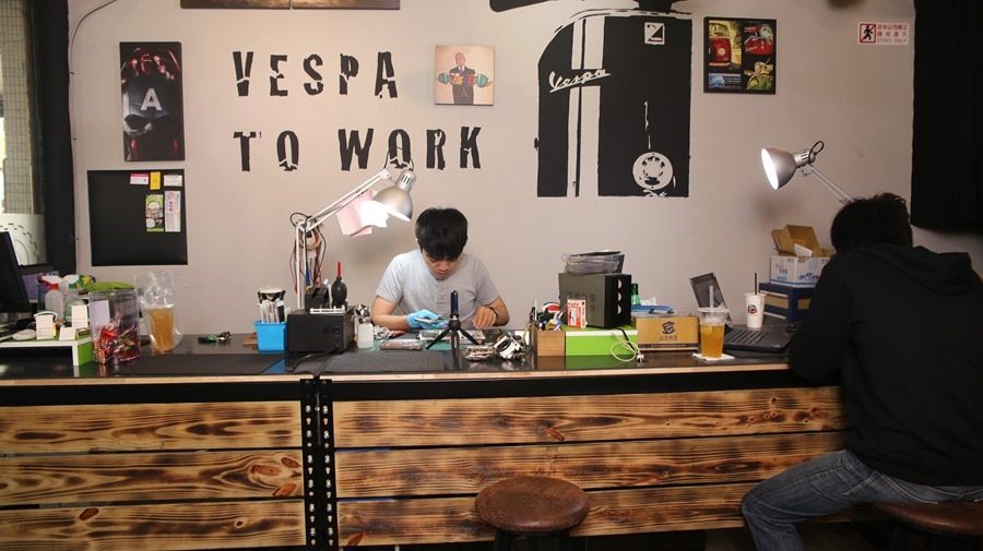 但是說回手機維修這件事情,硬大特別喜歡這邊的氣氛。雖然手機的零件、螺絲和更換的料常常弄得桌面凌亂,不過在這邊你可以看到他們維修前的準備,需要使用的工具都整齊的擺在桌上。(以前曾經碰過一家維修店,桌面工具和零件四處散亂,一度懷疑少一個螺絲還找得到嗎)