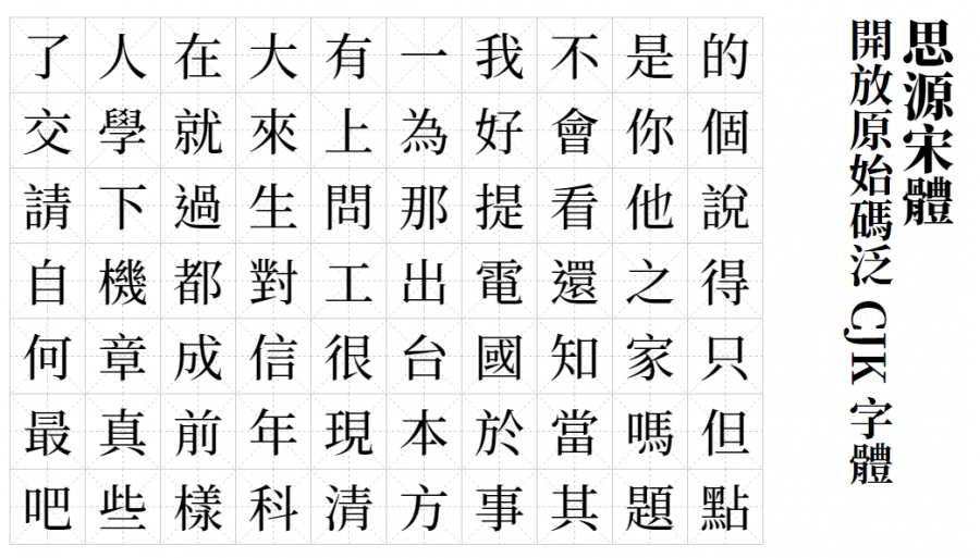 Adobe 和 Google 合作製作字體已經有一段時間,其中最令人印象深刻的就是「思源黑體」(Noto Sans),而今天 Adobe 正式發布和 Google 合作的新字型「思源宋體」 (Source Han Serif) 免費下載,在這套字型中同時包含了正體、簡體中文、日文、韓文四種語言,提供東亞語系文字有一致的視覺美感。共有 7 種字重,每個字重包含了 65,535 個字,總共大約有 45 萬個字圖,涵蓋範圍相當廣泛。