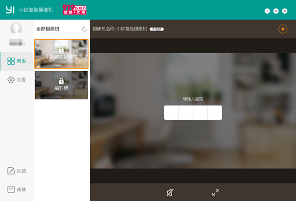 登入後就可以看到帳號內的小蟻攝影機了,如果有設定密碼的話,觀看畫面前也得輸入通關密碼否則是看不到畫面的。