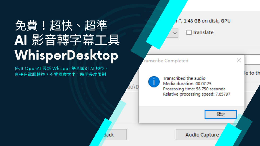 不管是演講、訪談或拍影片,上字幕都是相當花時間的工作,雖然有些剪輯軟體提供自動上字幕的功能,不過識別效果、資料 (你的聲音)安全都性不是非常理想。這篇文章和大家分享 WhisperDesktop,它使用最新的 Whisper 語音識別 AI 技術,可以快速、精準地幫你製作影片字幕,而且還能直接在你的電腦完成轉換,不受檔案大小、時間長度限制,而且支援 AMD 的 GPU 喔!