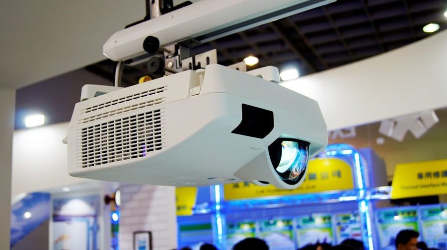 學校很常把投影機所在牆上,可以搭配兩個半圓所組成的喇叭,老師可以直接使用搭配的麥克風,聲音從喇叭出來,整合性更好,座在前排的學生也不會像以前離老師太近,而一直被喇叭的音量攻擊。