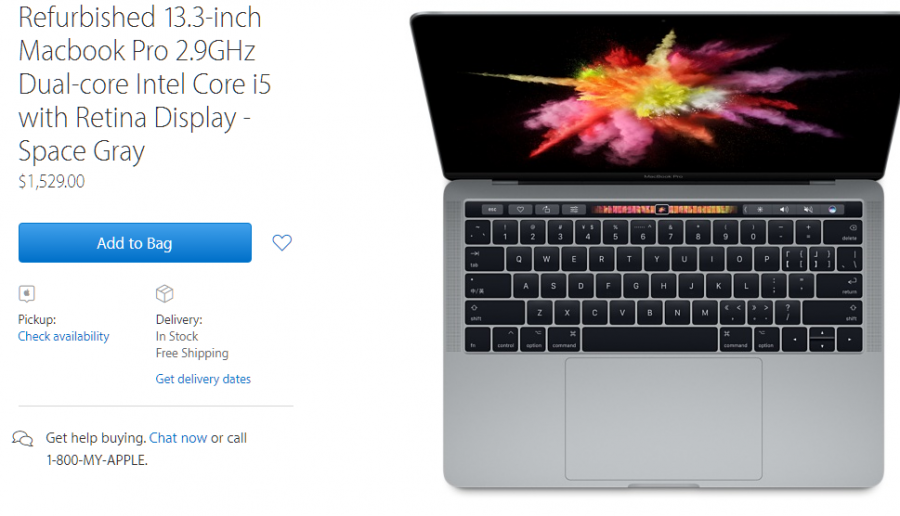 對於想入手 Apple 產品卻沒有足夠預算的人來說,從官方商店購買整修品(整新)是一個不錯的選擇, 去年底推出搭載 Touch Bar 的 Macbook Pro 現在也已經有整修品在美國 Apple 官網上以 85 折的價格出售,享有免運費以及一年原廠保固,想要以低價入手新 MacBook Pro 的話不妨考慮看看。