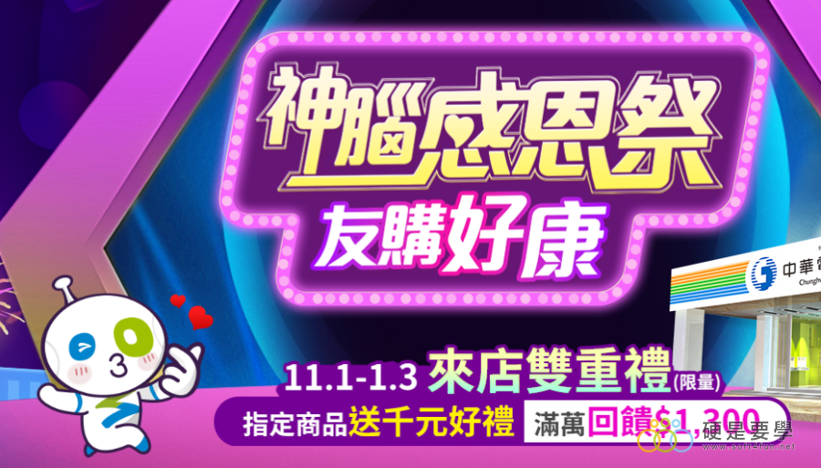 神腦國際今年推出的「神腦感恩季 友購好康」,買指定商品先送千元禮,單筆消費超過 1萬元再回饋 700 元購物金,現場辦資費不管是新辦、攜碼 (NP) 或續約,還加碼送購物金、吹風機、手機等優惠禮!還沒說到電信方案就已經這麼多優惠,你真的應該慶幸有到這篇文章 XD