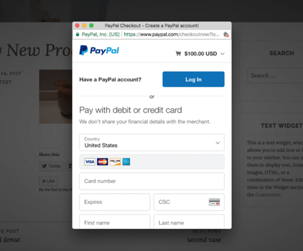 當網友點選商品的 PayPal 付款按鈕時就會彈出 PayPal 的付款畫面,這個畫面內容是 PayPal 官方的,無法客製內容,單純為進行 PayPal 的支付流程。