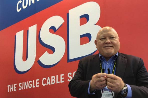 針對USB Type-C後續發展,USB開發者論壇 (USB-IF)表示接下來將與國際電工協會 (IEC)合作統一規範的充電介面,藉此讓所有裝置均可透過USB Type-C最高達100W輸出功率進行充電,同時針對線材部分也做安全機制設計,若連接埠偵測線材並未符合認證規範,將自動切換為最低標準電壓供電模式,避免線材因無法承受電壓而燒融。 ▲USB開發者論壇主席Jeff Ravencraf…