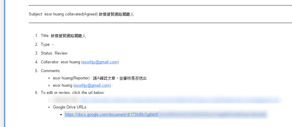 這樣一來,「 Collavate 」就幫我們在 Google Docs 上建立簡單的文件簽核、審核流程了,如果你在工作上有這樣的需求,或許這是一個可以解決問題的外掛。